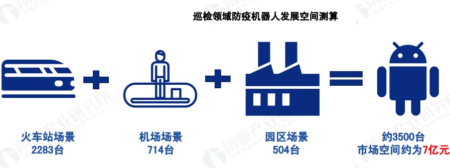 假設(shè)三等站配備1臺巡檢機(jī)器人、二等站配備2臺、一等站配備3臺、特等站配備4臺、民航機(jī)場配備3臺、每個(gè)園區(qū)配備3臺,巡檢L域防疫機(jī)器人的需求量約為3500臺。按照每臺機(jī)器人20萬元的價(jià)格計(jì)算,巡檢L域防疫機(jī)器人的市場空間約為7億元。