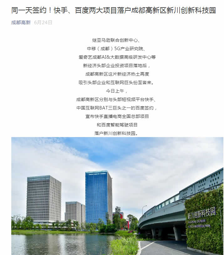 新川創(chuàng)新科技園于2012年正式啟動建設(shè),是新加坡與四川省攜手打造的國際合作共建園區(qū),由中新雙方合資組建中新公司進(jìn)行整體規(guī)劃、開發(fā)。園區(qū)圍繞人工智能、新醫(yī)學(xué)、5G通信等產(chǎn)業(yè),重點(diǎn)布局國際知名企業(yè)的研發(fā)中心和區(qū)域總部。