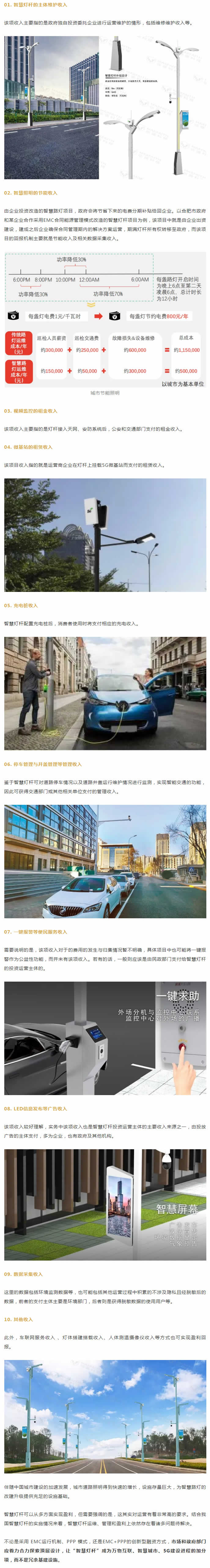 那么投資主體是怎么收回其G額的投資的呢?首先,要取決于產(chǎn)品本身的功能。從總體和長期范圍內(nèi)看,智慧燈桿將產(chǎn)生多項(xiàng)運(yùn)營收入,如補(bǔ)貼、安裝、運(yùn)維、搭載、廣告、能源、基站、數(shù)據(jù)等都將帶來收入。