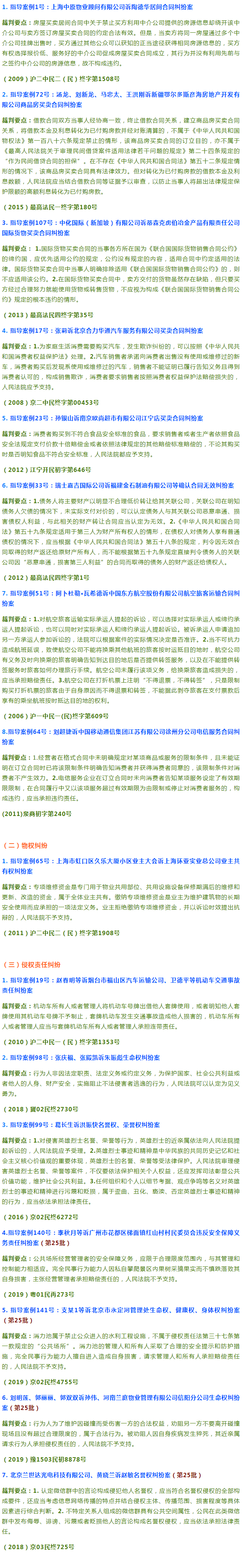 為方便法律同仁G效地學(xué)習(xí)了解,小編特將143件指導(dǎo)性案例中的民商事案例篩選出來(lái),并按民事類(lèi)(包括環(huán)境民事公益訴訟)、商事類(lèi)、程序類(lèi)(包括執(zhí)行)歸類(lèi),每一類(lèi)再按照案由進(jìn)行更加細(xì)致的分類(lèi),同時(shí)將案例對(duì)應(yīng)的案號(hào)附后,便于進(jìn)一步的查閱