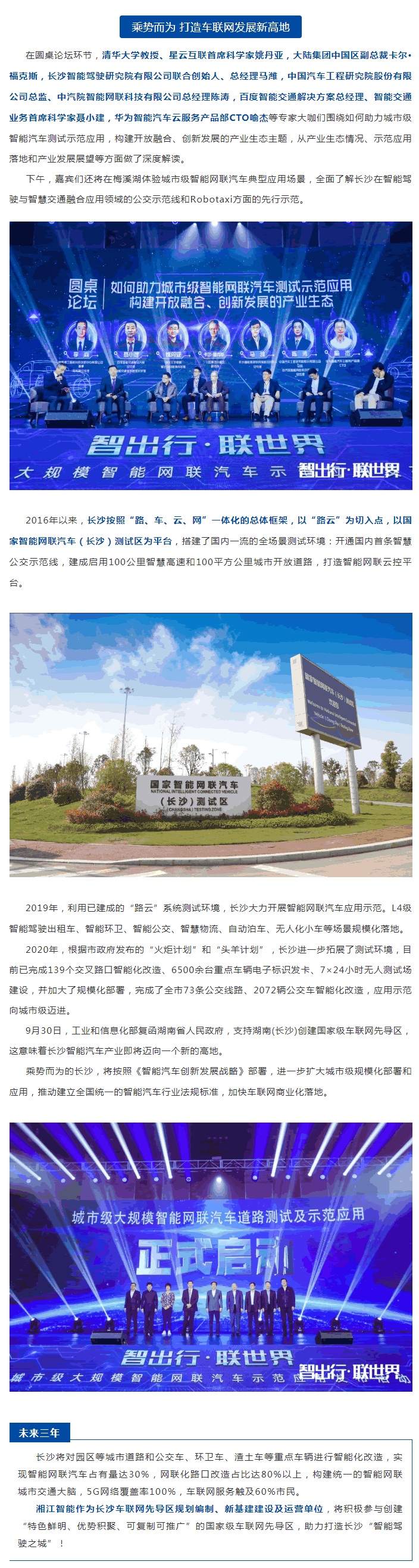 長沙市、株洲市、湘潭市、岳陽市工業(yè)和信息化局共同簽署了《城市級(jí)大規(guī)模智能網(wǎng)聯(lián)汽車道路測試及示范應(yīng)用共建倡議書》。