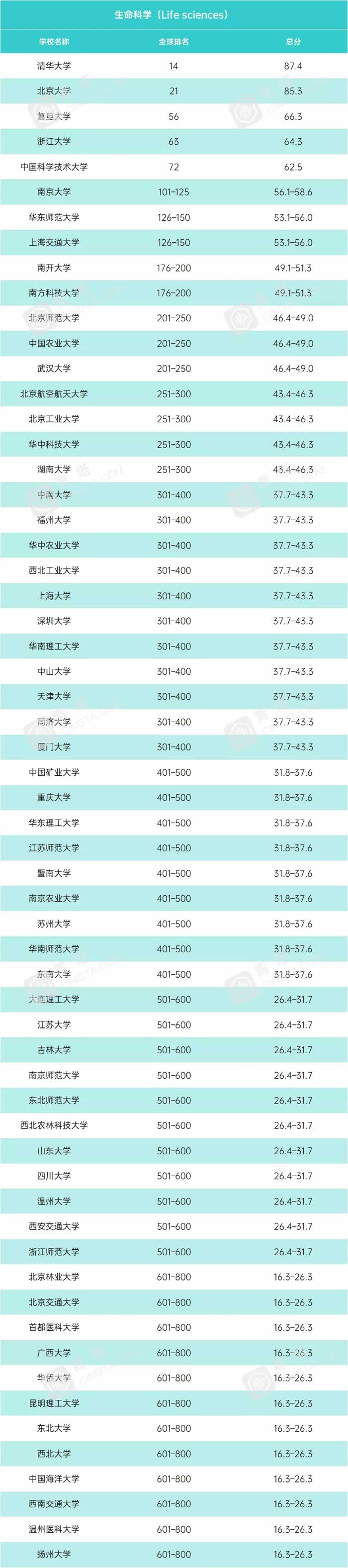 清華大學,北京大學,復旦大學,中國科技大學,浙江大學,上海交通大學,南京大學,中山大學,北京師范大學,武漢大學,南開大學