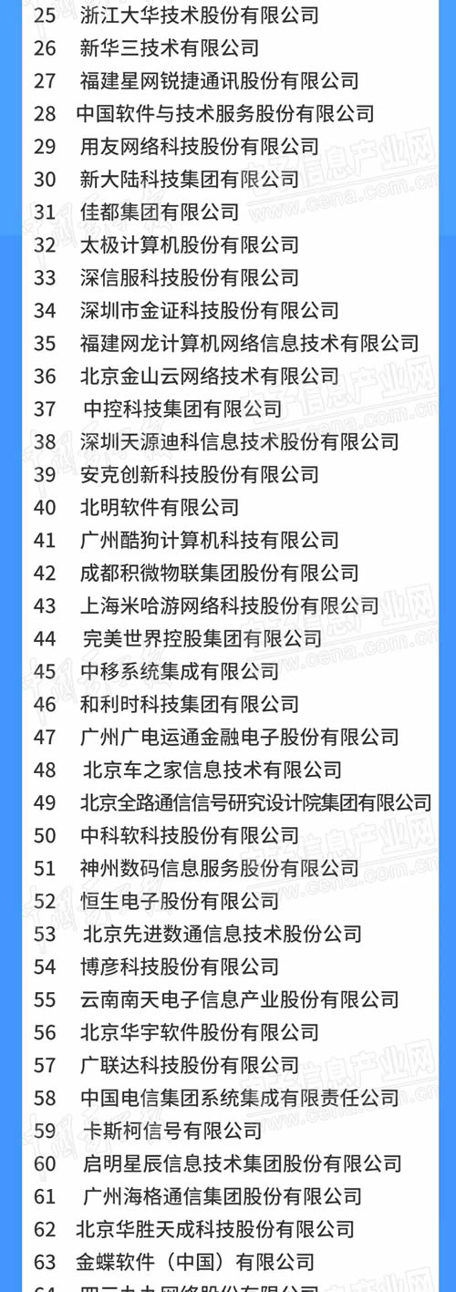 華為 海康威視 小米 中興通訊 大華股份 阿里云 科大訊飛 神州泰岳 京東方 亨通光電 佳都科技 寶信軟件 菜鳥網(wǎng)絡(luò) 東軟集團 美的 大唐電信