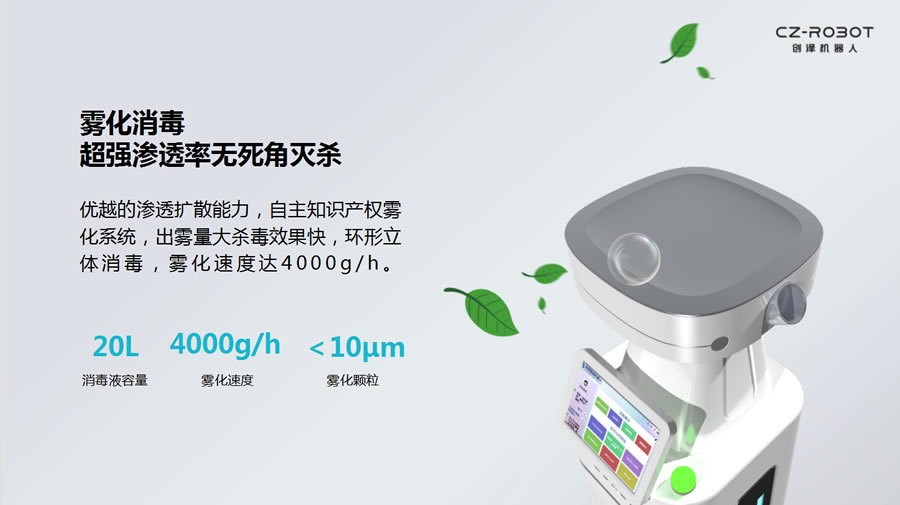 創(chuàng)澤集團(tuán)承擔(dān)了AI抗疫全場(chǎng)景示范工程消毒殺菌板塊的研發(fā),實(shí)施工作,霧化紫外線消毒殺菌機(jī)器人在醫(yī)院多場(chǎng)景成功應(yīng)用