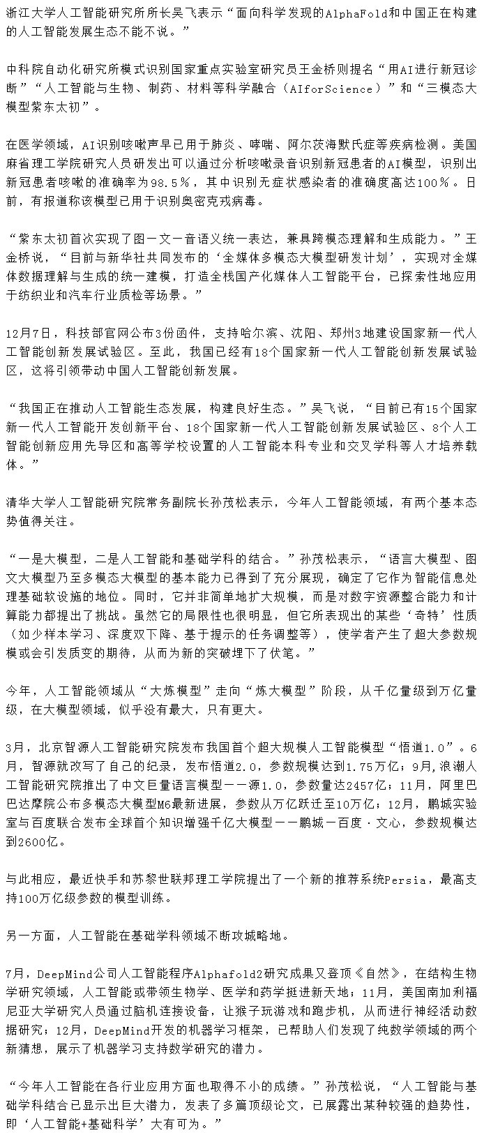 中科院自動化研究所模式識別國家重點實驗室研究員王金橋則提名“用AI進(jìn)行新G診斷”“人工智能與生物、制藥、材料等科學(xué)融合(AIforScience)”和“三模態(tài)大模型紫東太初”。