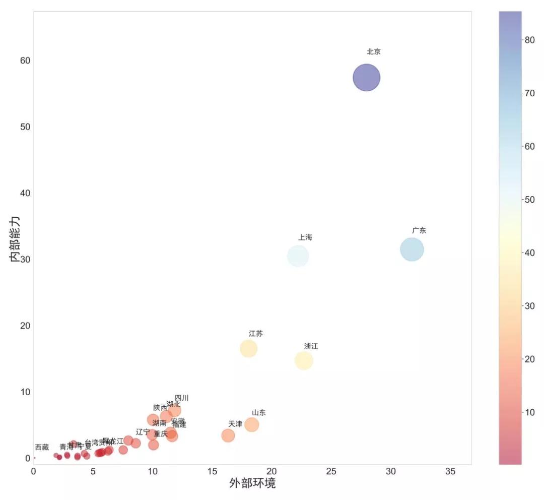 指數(shù)體系搭建方面,從系統(tǒng)性、權(quán)威性、可獲取性、可比性、發(fā)展性五大原則出發(fā),按照MECE要求,來構(gòu)建指標(biāo)體系。從內(nèi)部能力和外部環(huán)境兩大維度,由2個(gè)一級(jí)指標(biāo)、6個(gè)二級(jí)指標(biāo)、16個(gè)三級(jí)指標(biāo)構(gòu)成,并與多家權(quán)威數(shù)據(jù)機(jī)構(gòu)合作,保障數(shù)據(jù)可信度和權(quán)威性。