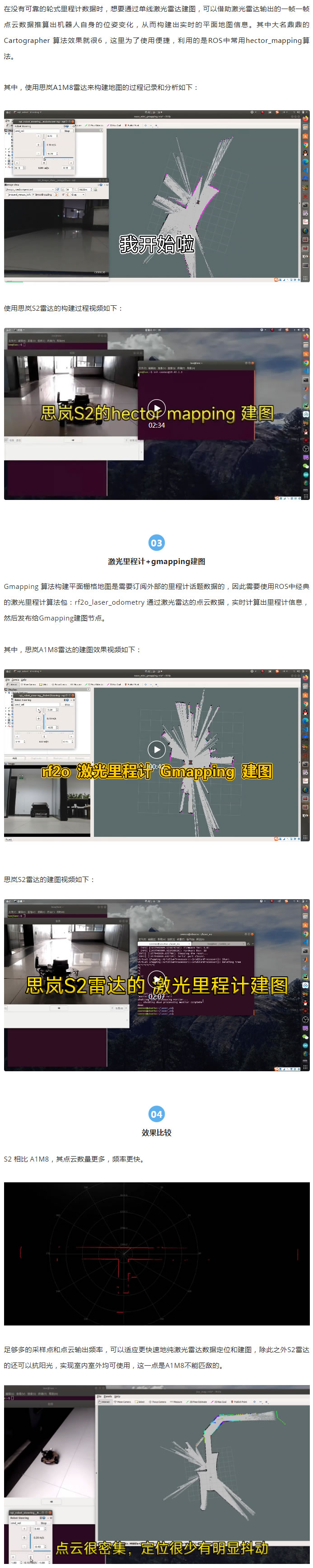 A1M8 雷達的測距范圍是 8-12 m,可以滿足居家環(huán)境的室內純激光里程計定位與建圖;但是S2超長的30m測距范圍,即使是室內的長走廊,如酒店、宿舍、教學樓走廊或者是電梯井等場景均可滿足。
