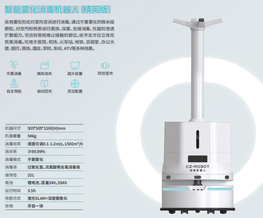 所以,創(chuàng)澤機器人基于自身輪式機器人底盤的優(yōu)勢,打造了一款霧化消毒機器人。
