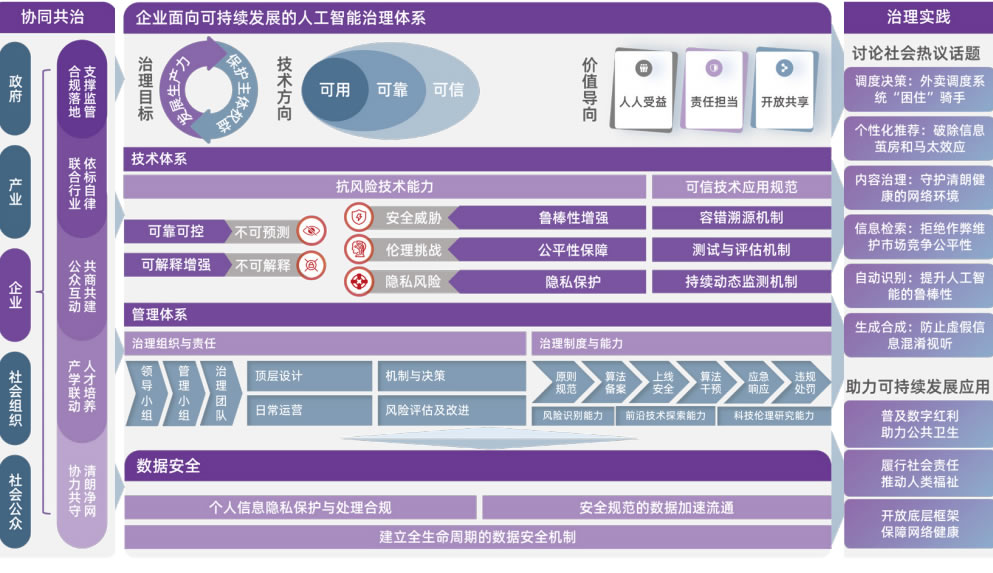 構(gòu)建面向可持續(xù)發(fā)展的人工智能技術(shù)體系,推動(dòng)人工智能技術(shù)可用、可靠、可信,其內(nèi)涵包括提升技術(shù)安全和構(gòu)建技術(shù)管理機(jī)制兩個(gè)層面工作