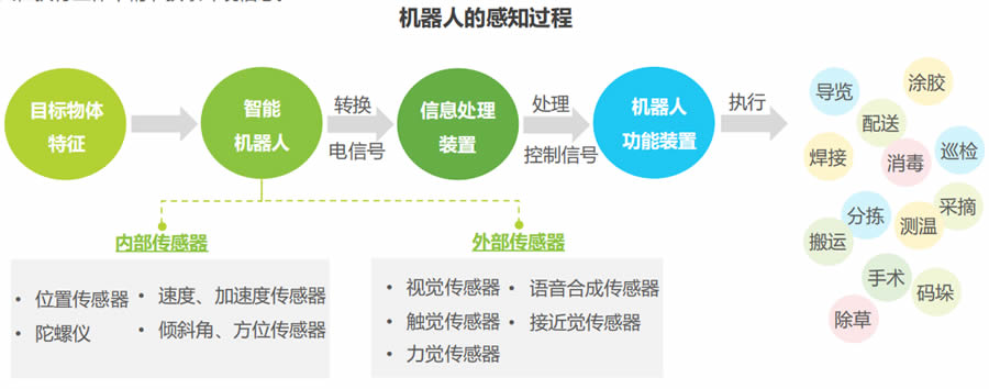 傳感器是機器人具有類人知覺與反應能力的基礎,它起到內部反饋控制,感知并與外部環(huán)境產(chǎn)生交互的作用。依據(jù)檢測