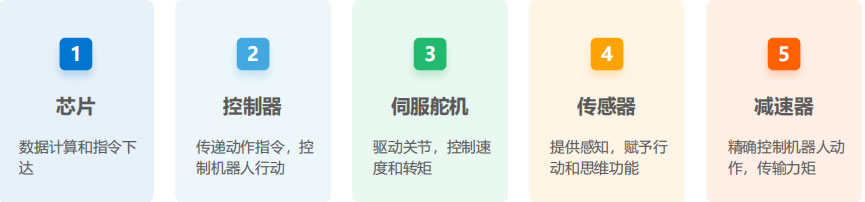 1G性能減速器;2G性能伺服驅動系統(tǒng);3智能控制器;4智能一體化關節(jié);5新型傳感器;6智能末端執(zhí)行器