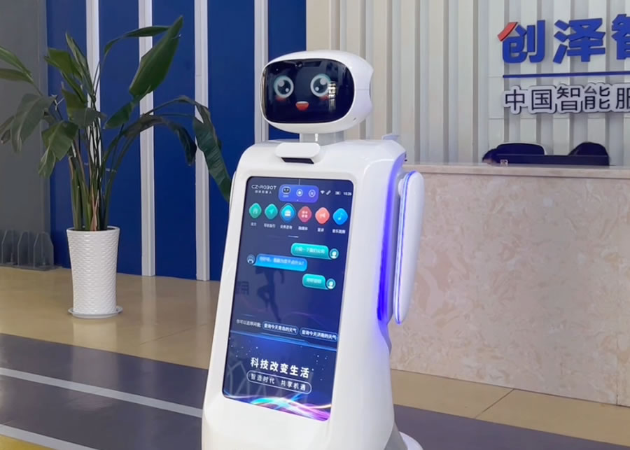來到創(chuàng)澤公司前臺(tái),一名機(jī)器人接待員便主動(dòng)迎上前來,詢問你的來訪目的,還可以為你做信息登記,前臺(tái)機(jī)器人可以變身前臺(tái)接待無接觸訪客邀約又具備變身行政助理的潛能