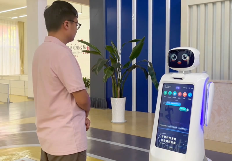 來(lái)到創(chuàng)澤公司前臺(tái),一名機(jī)器人接待員便主動(dòng)迎上前來(lái),詢(xún)問(wèn)你的來(lái)訪目的,還可以為你做信息登記,前臺(tái)機(jī)器人可以變身前臺(tái)接待無(wú)接觸訪客邀約又具備變身行政助理的潛能