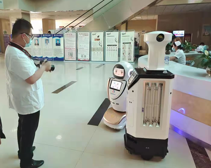 創(chuàng)澤智能機器人胸前掛著一個計算機屏幕,上面顯示了醫(yī)院多個方面的信息,解答患者關(guān)于科室,疾病狀況,醫(yī)生,用藥等問題,為患者提供專業(yè),規(guī)范的咨詢服務(wù)