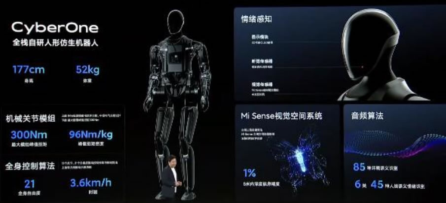 小米于2022年8月公布一款全尺寸人形機(jī)器人CyberOne。