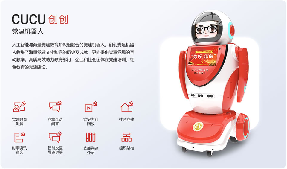 黨建講解機器人擴展黨建教育渠道,助力智慧黨建建設(shè),加強在黨建培訓(xùn)、紅色教育等方面人工智能應(yīng)用。