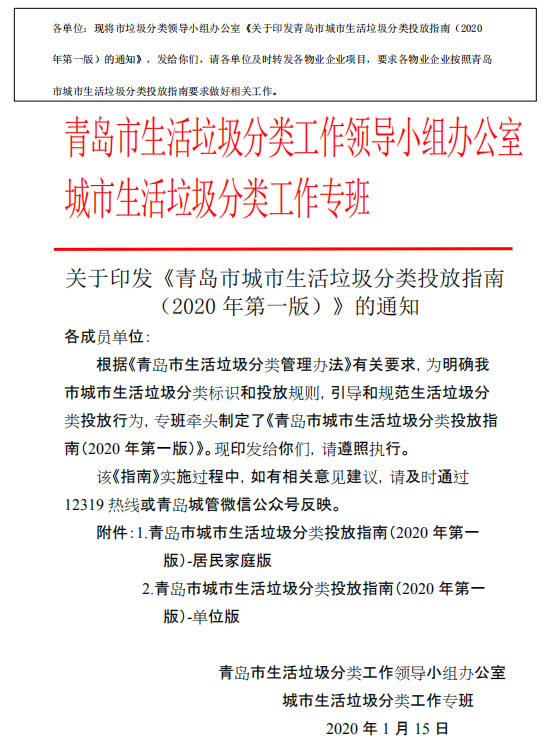 根據(jù)《青島市生活垃圾分類(lèi)管理辦法》有關(guān)要求,為明確我市城市生活垃圾分類(lèi)標(biāo)識(shí)和投放規(guī)則,引導(dǎo)和規(guī)范生活垃圾分類(lèi)投放行為,專(zhuān)班牽頭制定了《青島市城市生活垃圾分類(lèi)投放指南(2020 年D一版)》,F(xiàn)印發(fā)給你們,請(qǐng)遵照?qǐng)?zhí)行。